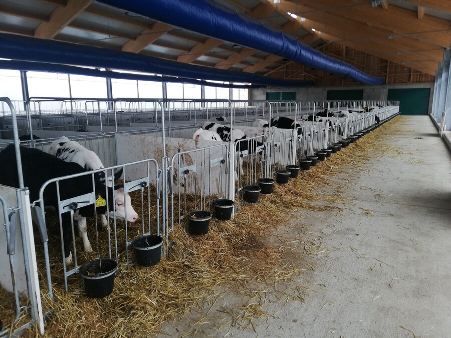 The advantageous solution of Uniboxes is the possibility of their assembly into arbitrary sets without anchoring to the floor. This also enables thorough cleaning and disinfection of the stable and individual parts of the boxes. The possibility of joining calves into pairs and groups (e.g. before moving calves to group pens after weaning) prevents social stress of the animals and supports the intake of feed. The solution thus enables the fulfillment of any possible tightening of welfare requirements for housed calves.
