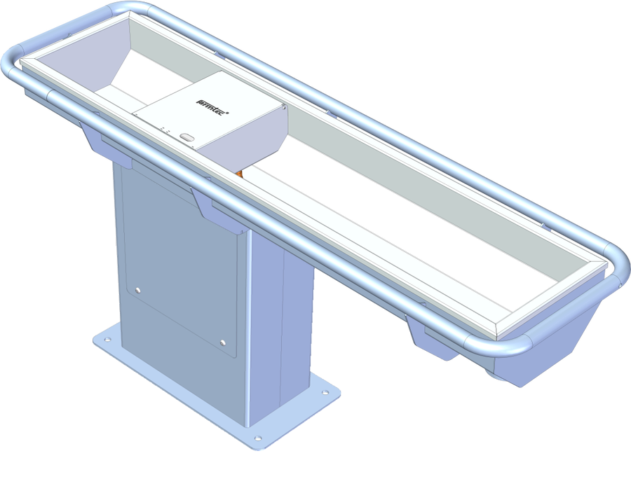 Těleso žlabu se skládá z žárově zinkovaného skeletu a nerezové vany, v níž je vodní hladina. Varianta nohy Z žárově zinkovaný svařenec pro upevnění žlabu na hotový beton s výškou hladiny žlabu 800 mm nad podlahou.