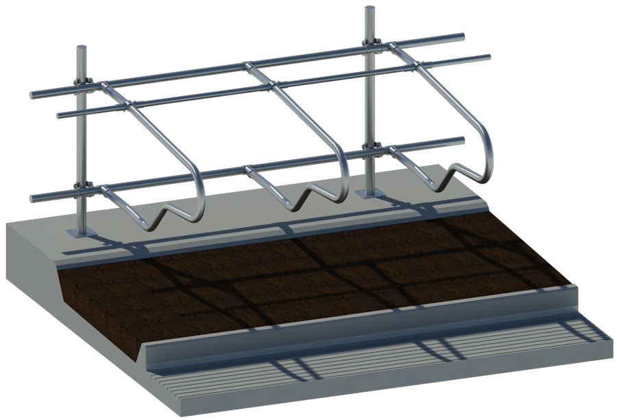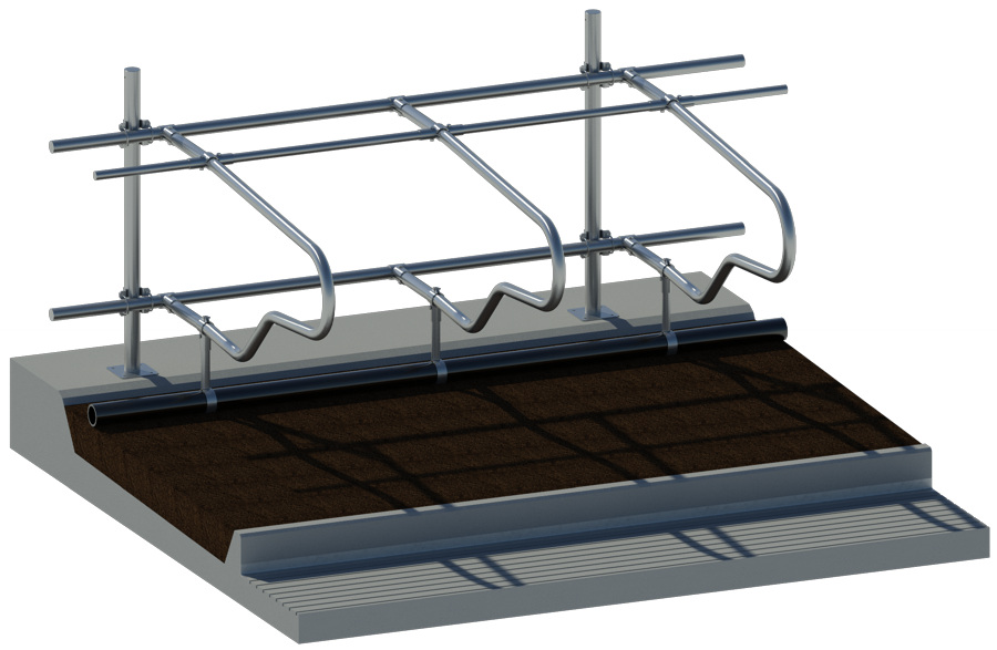 Boční zábrana OZBD 20 RADIBOR pro dojnice na vodorvné hrazení. Používá se při rekonstrukci stájí v případě, že není možný jiný způsob zavěšení zábran. Její nevýhodou totiž je, že spodní vodorovná trubka omezuje pohyb hlavy zvířat při zalehávání do boxu.