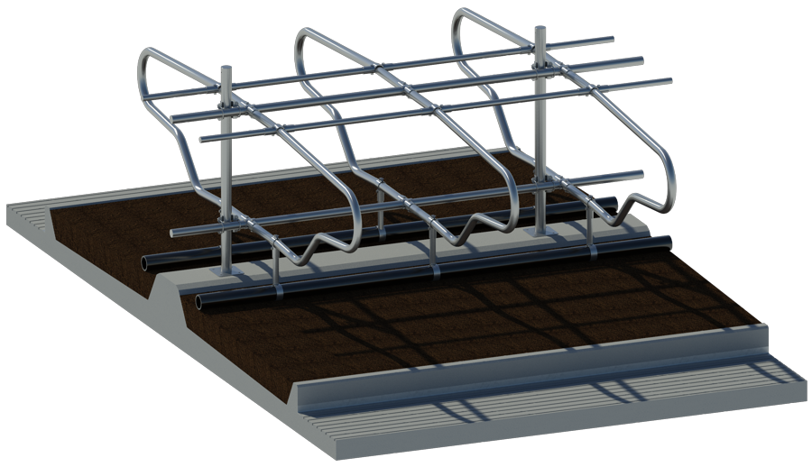 Vzdálenost spodní hrany spodní trubky od povrchu lože (E) |