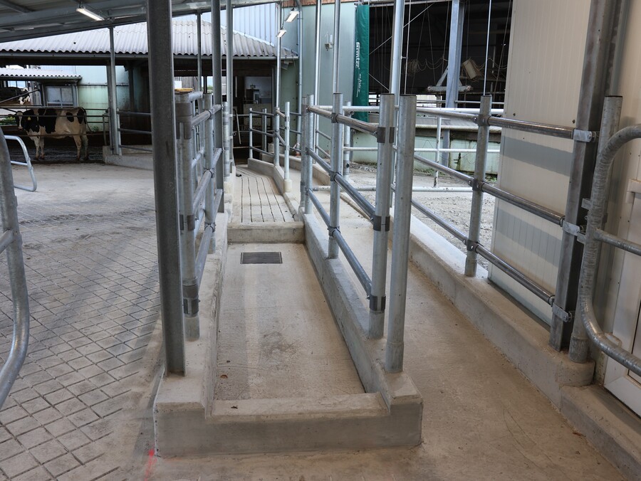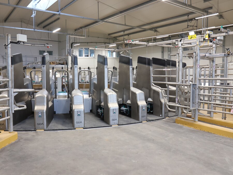 Novostaba robotické kruhové dojírny GEA DPQ, 50 míst v blízkosti dvou produkčních stájí s celkovou kapacitou 1200 dojnic. Hodinová průchodnost dojírny je 250 dojnic. Každá dojnice je při vstupu automaticky rozpoznána pomocí identifikačního systému. Veškeré úkony spojené s dojením probíhají v jednom kroku, to znamená, že robotické rameno nasadí strukové násadce na struky a provede stimulaci, důkladné očištění a dezinfekci struků (predip). Poté se spustí vlastní dojení. Dojící robot podojí každý struk samostatně a po celou dobu dojení pečlivě kontroluje vzorky mléka z jednotlivých struků. Nestandardní mléko je odděleno zvlášť. Po skončení dojení robot aplikuje dezinfekční prostředek na struky tzv. postdip, následuje automatický proplach každé dojicí soustavy. Všechny údaje o dojnici a procesu dojení jsou průběžně zaznamenávány a odesílány do systému dojírny, odkud se přenáší do manažerského programu FARMSOFT. Součástí dojírny je čekárna s přiháněčem se shrnováním kejdy, ve spodní části jsou rošty. V odchozí uličce je instalována selekční branka.