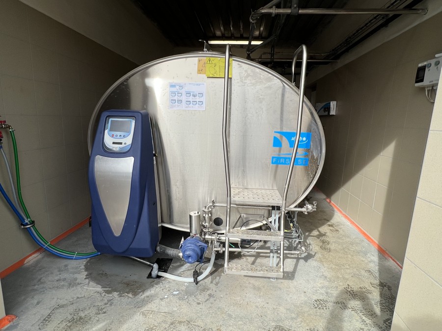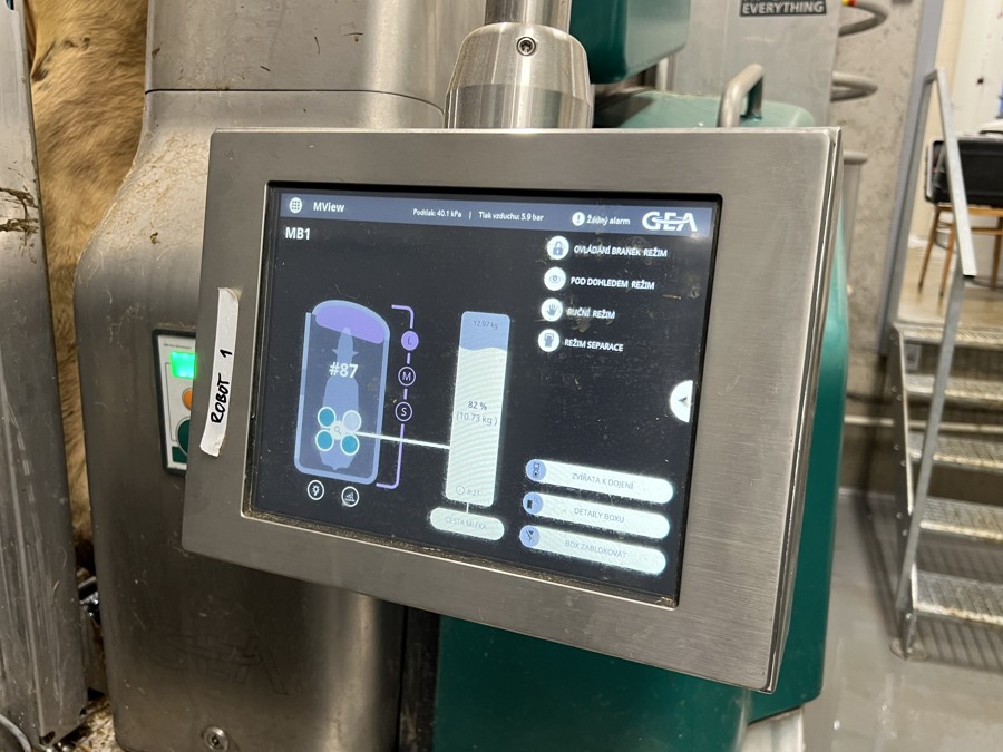 Robotické dojení GEA R9500 pro produkční skupinu 120 ks. Dva samostatné dojící roboti se zázemím zajišťují automatické dojení krav, měření počtu somatických buněk z každého dojení, automatickou desinfekci po každém dojení a separaci mléka z jednotlivých čtvrtí vemene. Nadojené mléko je skladováno v novém chladícím tanku SERAP o objemu 5.200 litrů.